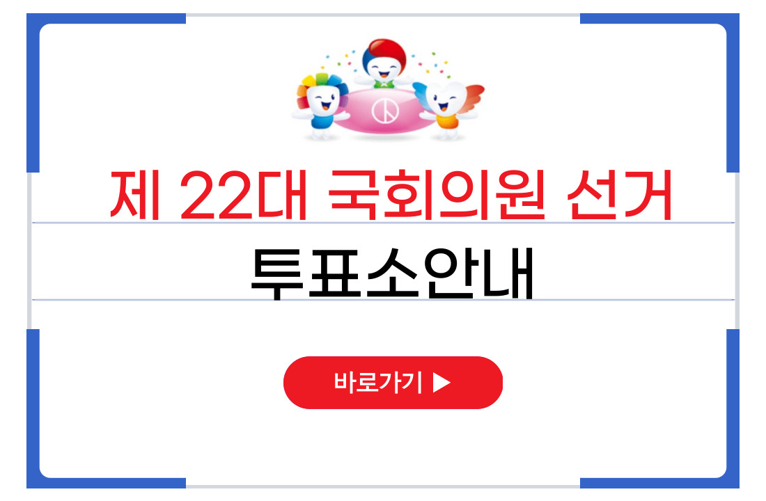 4월 10일 수요일 오전 6시부터 오후 6시까지 투표가 진행됩니다. 내 투표소위치를 확인 후 투표소에 방문해 주세요.